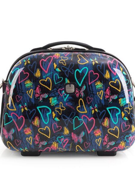 Beauty case sadrži dva odeljka, ogledalo i džep za poboljšanje organizacije. Poseduje traku za prilagođavanje Vaše toaletne torbe za nošenje zakačene za kofer a možete je i nositi na ramenu, zahvaljujući kaišu koga možete podesiti.