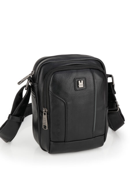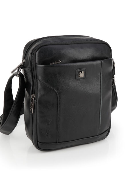 Moderna muška torba od sintetičke kože na rame. Pregrade su zaštićene kvalitetnim metalnim zip sistemom,dok je unutrašnjost opšivena kvalietnom postavom. Džep sa zadnje strane se takođe zatvara zipom.