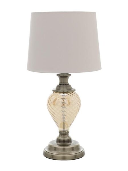 рсд 3.790,00Lampa stona sa platnenim abažurom, metal-staklo, 28x42cm, srebrna