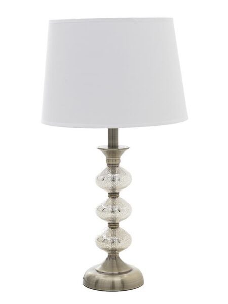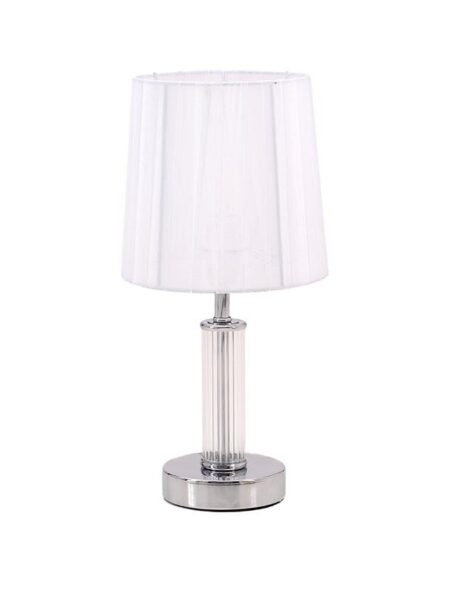 рсд 1.990,00Lampa stona sa platnenim abažurom, metal-staklo, 16x34cm, srebrno-bela