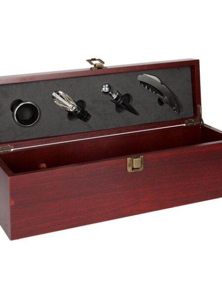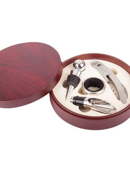 рсд 1.790,00Set za vino, drvena kutija, 4 elementa: vadičep, zatvarač za flaše, umetak za sipanje vina, prsten protiv prolivanja vina, dimenzije: 15cm