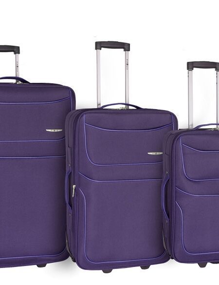 Set kofera Enova, Barcelona, set od tri kofera/trolleys visine 57,67 i 77cm. 100% polyester, 2 točkića, prednja dva džepa, teleskop ručka, veliki i srednji kofer imaju mogućnost proširenja, boja ljubičasta KUPOVINA ISKLJUČIVO ONLINE, MOGUĆNOST PREUZIMANJA I PLAĆANJA U RADNJI.