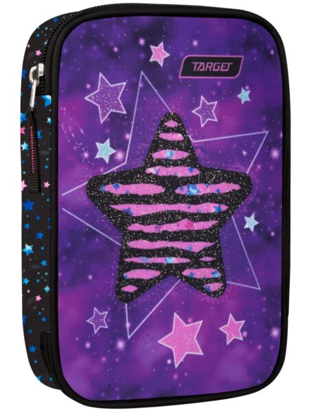 Pernica puna; 12 drvenih bojica + 12 flomastera + osnovni pribor; dimenzija: 21x14x4 cm; odvojiva mala pernica u dezenu glavne pernice