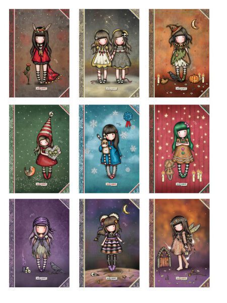 Sveska meki povez kvadratići Gorjuss, 3 komada u pakovanju, mat plastificirane korice i UV lak parcijalno sa glitterom; 40 + 4 lista sa rasporedom časova; 80 g/m2; 9 novih motiva