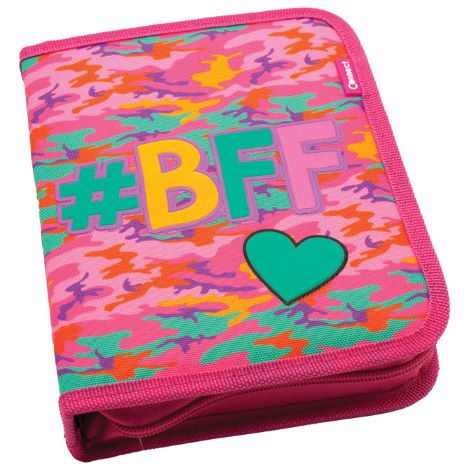 3 zipa; sadrži: 18 drvenih bojica, 18 flomastera, 2 hemijske olovke, gumica, makazice, raspored časova i rezač; 100% poliester; dimenzija: 12,5x19,5x6,5 cm; težina: 512g