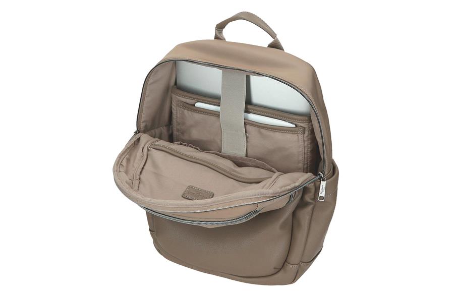 Ranac osmišljen za one koji žele funkcionalnost, organizaciju i moderan izgled u svakodnevnom ritmu. Izrađen od izdržljivog poliestera sa detaljima od veštačke kože, kombinuje praktičnost sa stilom. Glavni odeljak sadrži posebno postavljene pregrade za laptop do 13 inča i tablet, kao i dodatni prostor za aksesoare, džep sa rajsferšlusom i dve pregrade za olovke — sve uredno i lako dostupno. Prednji džep sadrži dve manje pregrade idealne za mobilni telefon ili kartice, dok bočni džepovi omogućavaju nošenje flašice s vodom ili drugih dodataka. Široke, ergonomski oblikovane i postavljene naramenice savršeno se prilagođavaju leđima, a zadnja traka omogućava lako pričvršćivanje na kofer tokom putovanja. Ugrađeni USB port sa kablom omogućava povezivanje na eksternu bateriju — za punjenje u pokretu, bez kompromisa.