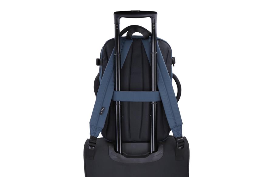 Ranac Sail Up donosi pametnu organizaciju i pouzdanu zaštitu: glavni odeljak sadrži dve pregrade – jednu sa rajsferšlusom i drugu sa elastičnim trakama za sigurno fiksiranje stvari, uz integrisani USB port za punjenje uređaja u pokretu. Poseban zadnji odeljak štiti laptop do 15,6″ i tablet, dok prednji deo s organizatorom drži sitnu tehniku i lične stvari uredno na dohvat ruke. Široke, ergonomske naramenice i traka za kofer obezbeđuju udobnost tokom celog dana i lagodna putovanja.
