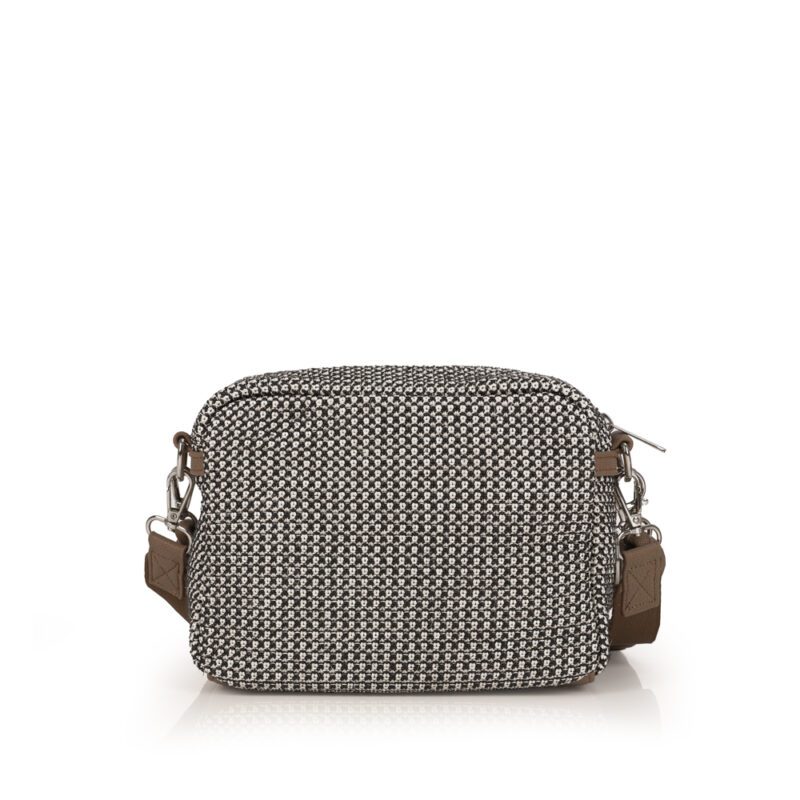 Dimenzije torbe su 24 × 16 × 7 cm, što je čini idealnim izborom za svakodnevne obaveze, gradske šetnje ili putovanja. Unutrašnjost sadrži dva glavna odeljka sa dovoljno prostora za osnovne lične stvari ii unutrašnji džep sa rajsferšlusom za bezbedno čuvanje sitnica. Na poleđini se nalazi spoljašnji džep sa rajsferšlusom, savršen za telefon, ključeve ili dokumenta koja želiš da budu lako dostupna. Podesivi kaiš za nošenje preko ramena pruža maksimalnu udobnost i slobodu pokreta, dok kvalitetni metalni zipovi dodatno naglašavaju modernu estetiku torbe.