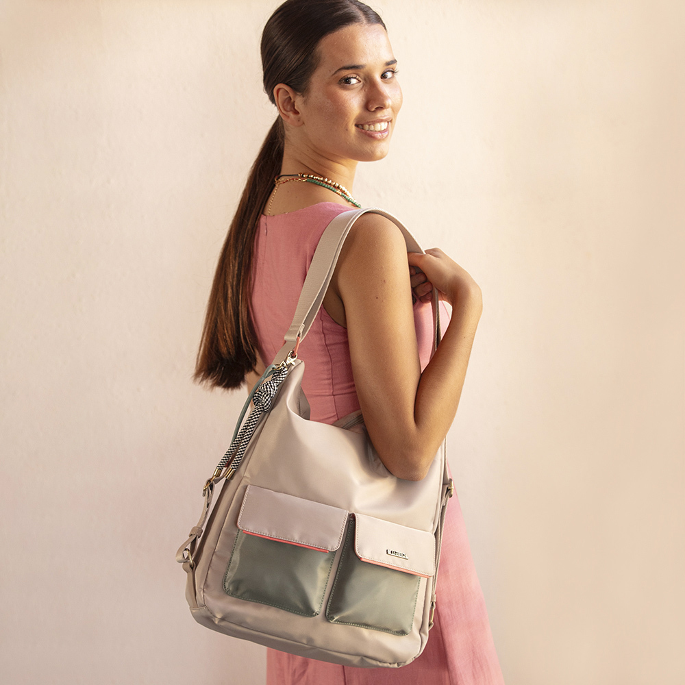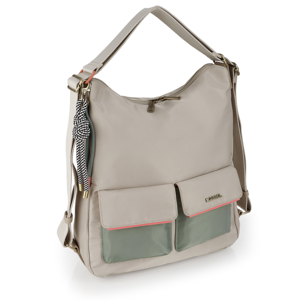 Torba na rame/ranac, 32x37x9 cm, poliester/eko-koža, boja: siva/zelena