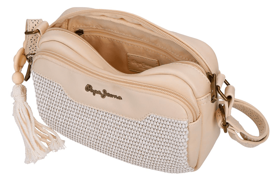 Torba Pepe Jeans, dimenzije: 21x15x6cm, eko-koža/poliester, boja: bež