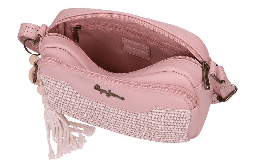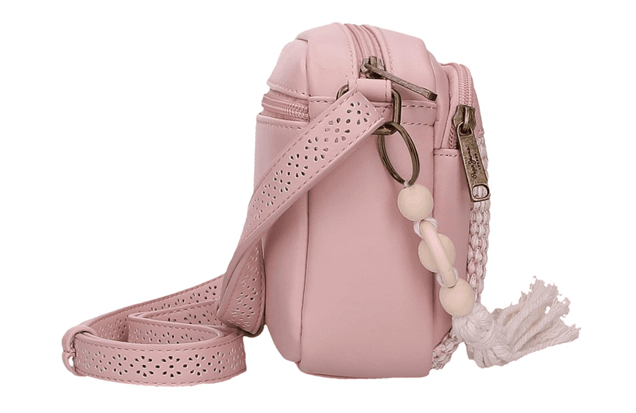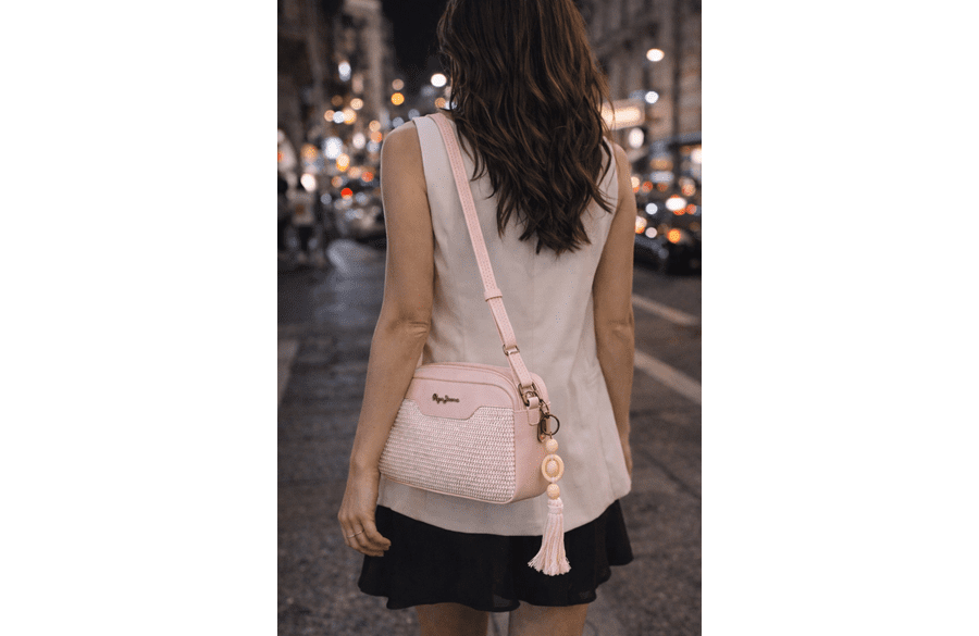 PEPE JEANS CLARA ženska torba na rame donosi savršen spoj romantične estetike i moderne praktičnosti u kompaktnom formatu koji se lako uklapa u svakodnevni ritam. Kombinacija glatke eko kože i pletene teksture na prednjem delu daje ovom modelu poseban vizuelni identitet, dok nežna roze nijansa unosi svežinu, ženstvenost i lakoću u svaki outfit. Diskretan metalni Pepe Jeans logo elegantno je uklopljen u prednji deo torbe, dok dekorativni privezak sa perlama i resama daje toplinu i prepoznatljiv šarm cele kolekcije. Dimenzije 21 × 15 × 6 cm čine ovaj model idealnim izborom kada želite laganu, praktičnu i stilsku torbu za grad, kafu, šetnju ili izlazak.
