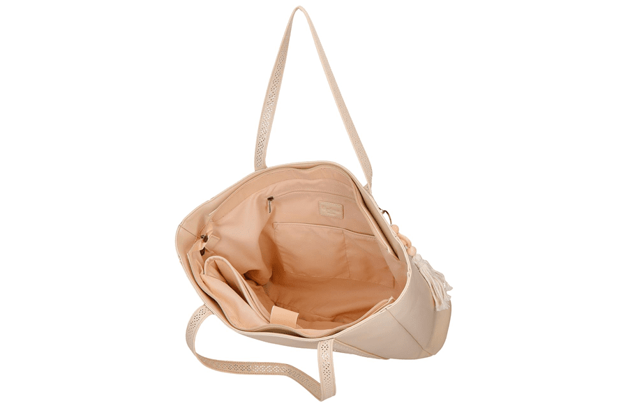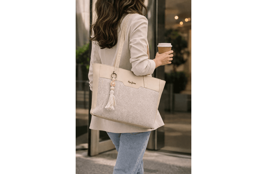 Pepe Jeans CLARA ženska tote torba osmišljena je za žene koje žele spoj prostranosti, organizacije i prepoznatljivog stila. Ovaj model donosi elegantnu siluetu u većem formatu, uz nežne pastelne tonove i detalje koji ga izdvajaju iz klasičnih poslovnih torbi. Kombinacija glatke eko kože i pletene teksture na prednjem delu daje torbi toplinu, karakter i vizuelnu dinamiku, dok dekorativni privezak sa perlama i resama unosi dozu nenametljivog boho šarma. Dimenzije 36 cm • 30 cm • 12 cm čine ovaj model savršenim izborom za posao, fakultet, putovanja ili svakodnevne obaveze kada ti je potrebno više prostora bez odricanja od stila. CLARA tote torba izgleda sofisticirano, a pritom nudi funkcionalnost koju savremeni tempo života zahteva.