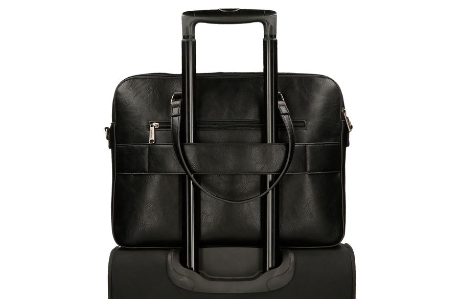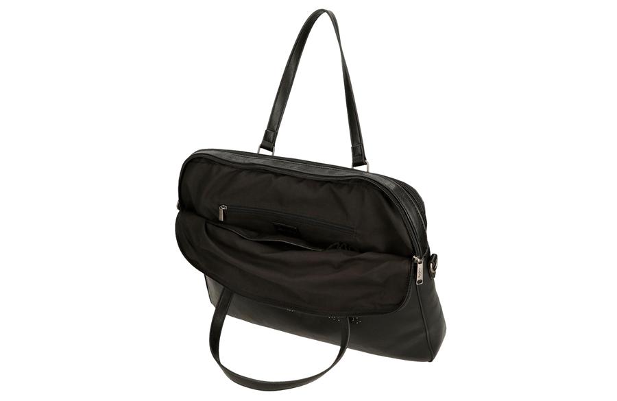 Dimenzije torbe su 40 × 30 × 5 cm (širina × visina × dubina). Unutrašnjost ima dva odvojena odeljka sa rajsferšlusom. U jednom se nalazi postavljeni deo za laptop do 15,6” (26 × 36 × 3 cm), kao i prostor za tablet. Drugi odeljak sadrži dodatni džep sa rajsferšlusom i male pregrade za telefon, ključeve ili dokumenta. Zadnja strana ima traku za postavljanje na kofer, što je čini idealnom i za poslovna putovanja.