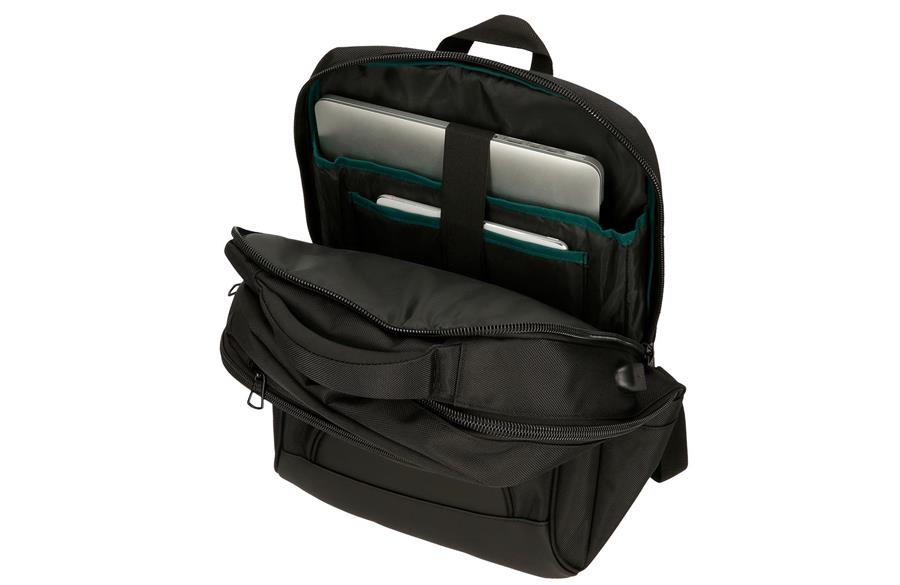 Ranac je sa specifičnim odeljkom za laptop do 15,6″ kao i sa prednjim džepom sa unutrašnjim organizatorom za odlaganje olovaka i malih gadžeta. Bočni džepovi i integrisan USB port sa kablom omogućavaju povezivanje sa power bank-om. Ojačana leđa, sa širokim, ergonomskim i postavljenim kaiševima koji se savršeno prilagođavaju leđima kako bi pružili najveću udobnost prilikom nošenja. Takođe, tu je i mogućnost prilagođavanja koferu kada putujete.