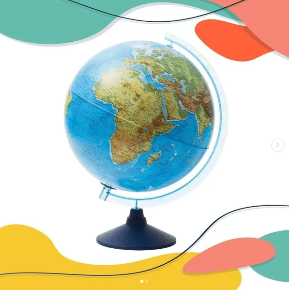 Globus svetleći, edukativno pomagalo i ukras u dečijoj sobi, prečnik 30 cm, ćirilica, prikazuje fizičko-geografsku kartu, a uključen geopolitičku kartu sveta, led svetlo, sa kablom.