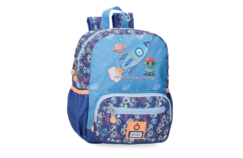 Enso NEW FRIENDS ranac za vrtić kolekcije spaja svemirske motive, jarke boje i simpatične likove koji mališanima odmah privuku pažnju. Idealna je opcija za vrtić, park ili kratke porodične izlete. Raketica, planete i preslatki vanzemaljci stvaraju vedar i razigran izgled koji inspiriše maštu.