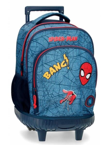 рсд 9.990,00Ranac na točkiće Spiderman, dimenzije: 32x45x21cm, dve pregrade na zip, džep na zip sa prednje strane, džepovi za bočicu sa bočnih strana, impregnirani poliester materijal koji štiti od vlage, zaštita sa donje strane ranca, dupli točkići, ručka za izvlačenje, podešavajuće naramenice za nošenje na leđima po potrebi, ručka za nošenje