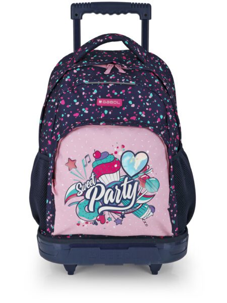 Najbolja Gabol inovacija do sada: ranac sa točkićima koji je moguće rasklopiti, što znači da se može koristiti kao klasičan ranac sa naramenicama ili kao troler sa teleskopskom ručkom i čvrstim točkićima. Kada se ovome doda njegova izuzetno mala težina od 1,8 kg sa točkićima ili manje od 600g samog ranca dobijate idealan ranac za polazak u školu. Savršen izbor za devojčice koje žele praktičnost, udobnost i prelep dizajn u jednom. Dimenzije ranca su prilagodjene školskim potrebama, sa prostranim glavnim odeljkom, i dva džepa sa prednje strane kao i bočnim mrežastim džepovima za flašicu ili sitnice. Dobro organizovana unutrašnjost i ojačana ledja i naramenice obezbedjuju udobnost kada se nosi na ledjima. Ranac krase zanimljive kombincije veselih boja. Izradjen je od izdržljivog, vodootpornog i lako perivog materijala, otporan na habanje. Pravi izbor za moderne i praktične školarce.