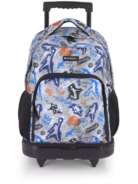 Najbolja Gabol inovacija do sada: ranac sa točkićima koji je moguće rasklopiti, što znači da se može koristiti kao klasičan ranac sa naramenicama ili kao troler sa teleskopskom ručkom i čvrstim točkićima. Kada se ovome doda njegova izuzetno mala težina od 1,8 kg sa točkićima ili manje od 600g samog ranca dobijate idealan ranac za polazak u školu. Savršen izbor za dečake koji žele praktičnost i udobnost u jednom. Dimenzije ranca su prilagodjene školskim potrebama, sa prostranim glavnim odeljkom, i dva džepa sa prednje strane kao i bočnim mrežastim džepovima za flašicu ili sitnice. Dobro organizovana unutrašnjost i ojačana ledja i naramenice obezbedjuju udobnost kada se nosi na ledjima., Ranac krase atraktivne boje i sportski motivi. Izradjen je od izdržljivog, vodootpornog i lako perivog materijala, otporan na habanje. Pravi izbor za moderne i praktične školarce.