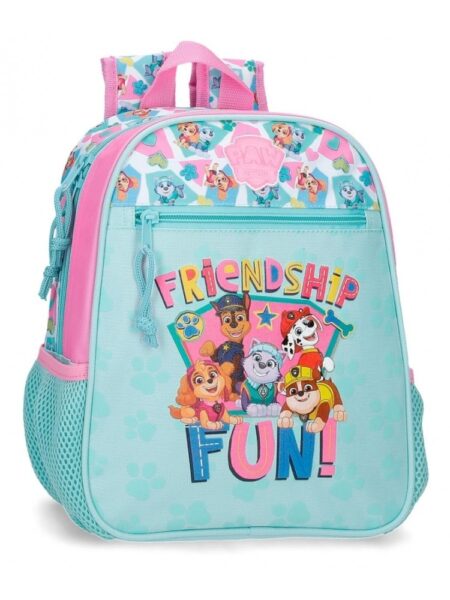 ranac za vrtić; 1 pregrada na zip; džep na zip sa prednje strane; bočni mrežasti džepovi; naramenice i ručka za nošenje; materijal: 100% poliester; dimenzija: 23x28x9 cm
