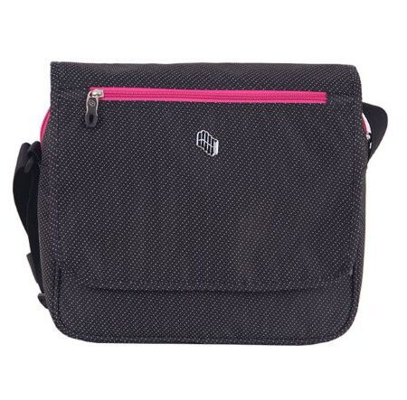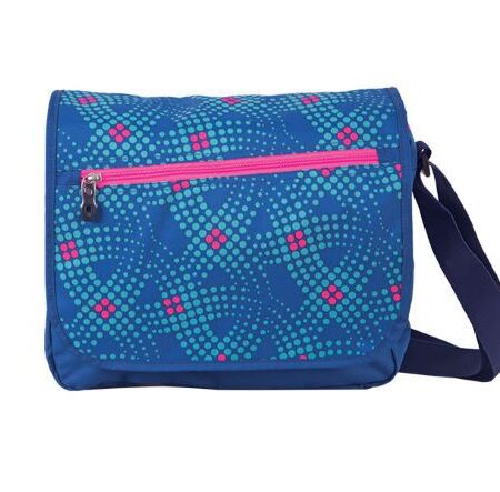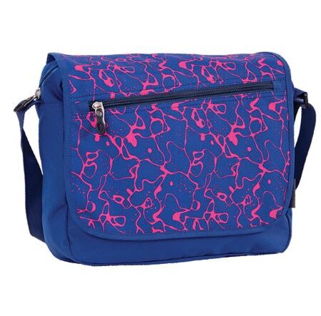 Školska torba dimenzija 32x28x9cm, klasičnog izgleda sa ojačanim kaišem, kopčanjem na čičak, jedna velika pregrada na zip + jedna manja + džep sa zipom na prednjoj strani.