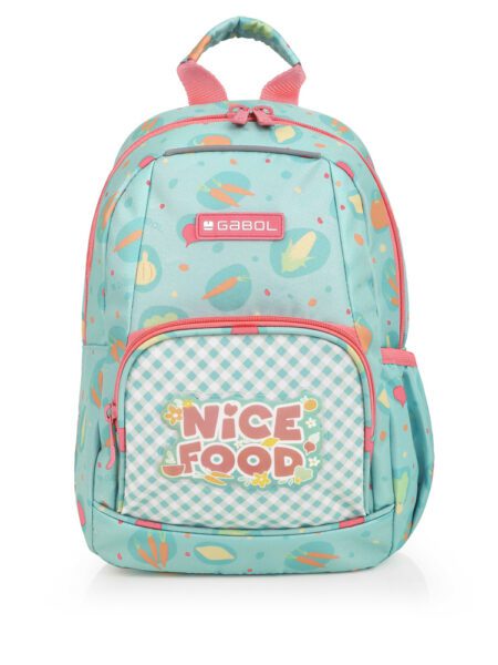 Kompaktan predškolski ili vrtićki ranac u neodoljivoj pastelnoj kombinaciji, gde je osnova mint zelena, a u raznim bojama simpatično prikazano povrće. Pored glavne prostrane pregrade ima i bočni džep za flašicu, a sa prednje strane dodatni džep idealan za odlaganje maramica, užine i sl.. Namenjen je za sve dnevne predškolske aktivnosti, sport, izlete. Ranac je izrađen od poliestera i veoma trajan. Rameni kaiševi su podesivi. 1 ranac=više generacija!