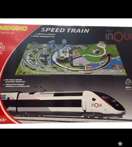 рсд 14.990,00TGV INOUI je vozna garnitura na električni pogon u HO razmeri. Sadrži: lokomotivu sa pogonom, lokomotivu bez pogona, dva putnička vagona i 2,85 metara pružnih elemenata. Napajanje je preko kontrolnog adaptera.