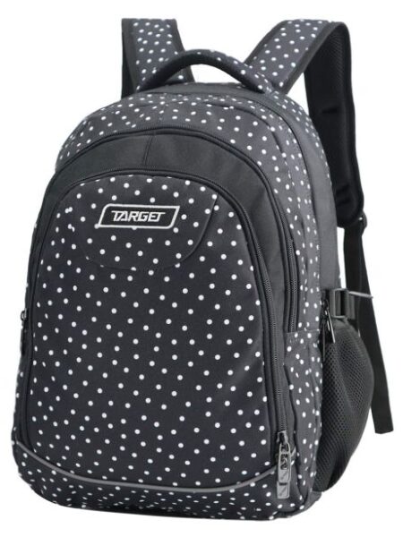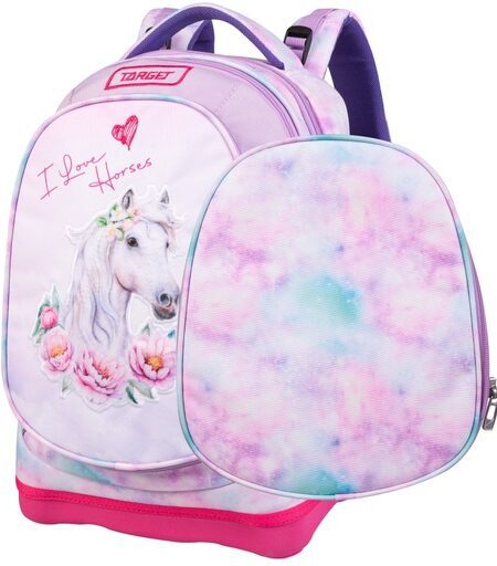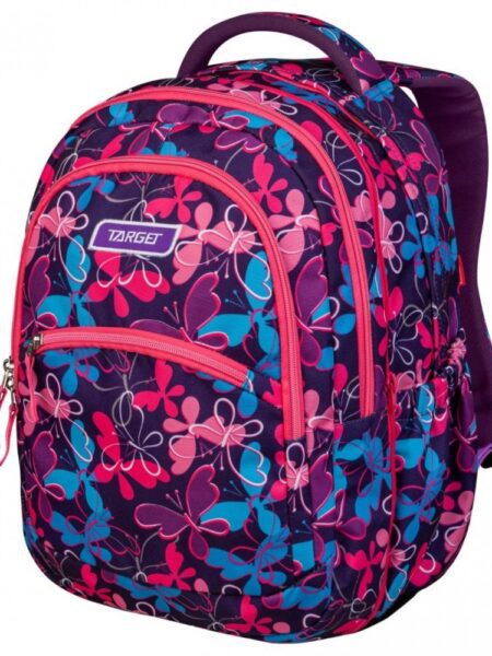 Ranac Target sa dva lica; jednostavnom zamenom prednje strane dobijate novi izgled ranca; ranac đački; anatomski; super lagan; dimenzija: 32x43x18 cm; ergonomski oblikovan leđni deo omogućava protok vazduha; anatomski oblikovane naramenice; kaiševi za podešavanje; dodatno podešavanje naramenica koje prati rast deteta; snažno reflektujući, sigurnosni delovi; materijal odbija vodu, štiti od vlage, tri pregrade sa zipom, džepovi sa bočnih strana, lagano višeslojno čvrsto dno.