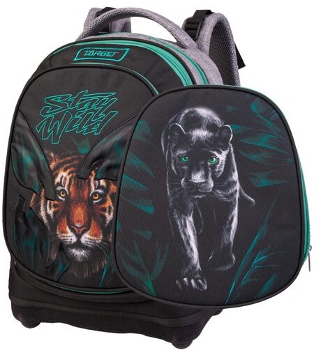 Ranac Target sa dva lica; jednostavnom zamenom prednje strane dobijate novi izgled ranca; ranac đački; anatomski; super lagan (840g); dimenzija: 32x43x18 cm; ergonomski oblikovan leđni deo omogućava protok vazduha; anatomski oblikovane naramenice; kaiševi za podešavanje; dodatno podešavanje naramenica koje prati rast deteta; snažno reflektujući, sigurnosni delovi; materijal odbija vodu, štiti od vlage, tri pregrade sa zipom, džepovi sa bočnih strana, lagano čvrsto dno od Eva pene.