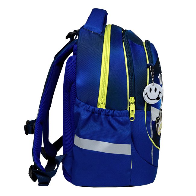 Ranac predškolski i za slobodne aktivnosti; glavna pregrada sa zipom; unutrašnji džep sa zipom; manji unutrašnji džep; 2 mrežasta bočna džepa; postavljene naramenice sa podešavanjem dužine; materijal: poliester; dimenzija; 36x29x12cm
