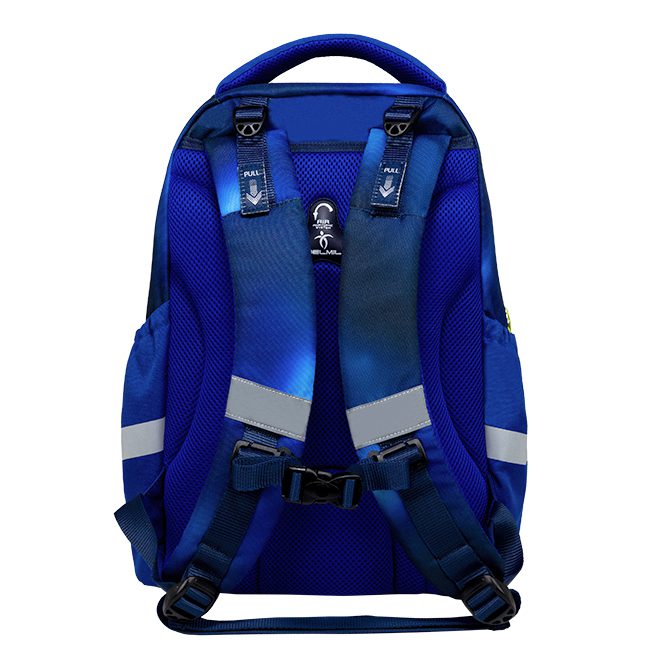 Ranac đački; anatomski; super lagan: ~800g; dimenzija: 28x41x19 cm; ergonomski oblikovan leđni deo omogućava protok vazduha; anatomski oblikovane naramenice; kaiševi za podešavanje; dodatno podešavanje u ramenom pojasu; kopčanje u grudnom delu, vrlo bitno za prenos težine napred; snažno reflektujući sigurnosni delovi; materijal odbija vodu, štiti od vlage, tri pregrade sa zipom, džepovi sa bočnih strana, ojačano dno.
