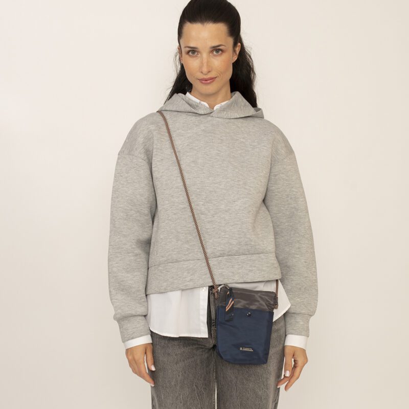 Dimenzije torbe su 24 × 16 × 7 cm, što je čini idealnim izborom za svakodnevne obaveze, gradske šetnje ili putovanja. Unutrašnjost sadrži dva glavna odeljka sa dovoljno prostora za osnovne lične stvari ii unutrašnji džep sa rajsferšlusom za bezbedno čuvanje sitnica. Na poleđini se nalazi spoljašnji džep sa rajsferšlusom, savršen za telefon, ključeve ili dokumenta koja želiš da budu lako dostupna. Podesivi kaiš za nošenje preko ramena pruža maksimalnu udobnost i slobodu pokreta, dok kvalitetni metalni zipovi dodatno naglašavaju modernu estetiku torbe.