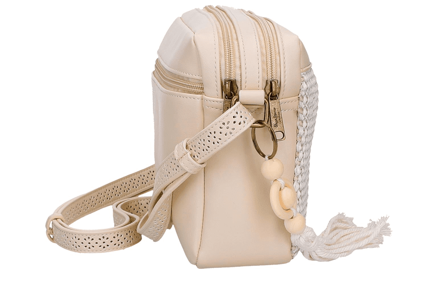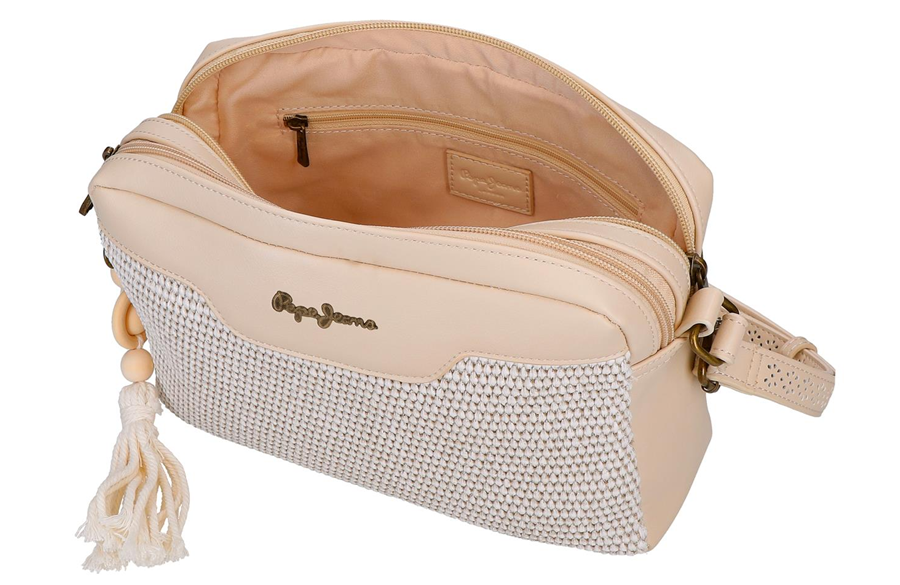 Pepe Jeans CLARA ženska torba na rame donosi savršen spoj sofisticiranog dizajna, praktičnosti i pažljivo biranih detalja. Ovaj model osmišljen je za žene koje vole modne dodatke sa karakterom, ali i funkcionalnost koja prati svakodnevni tempo života. Kombinacija glatke eko kože i pletene teksture na prednjem delu torbe daje joj toplinu, dubinu i prepoznatljiv vizuelni identitet. Nežna bež nijansa dodatno naglašava eleganciju modela i čini ga lako uklopivim uz različite modne stilove – od dnevnih casual kombinacija do urednijih gradskih outfita. Dekorativni privezak sa drvenim perlama i resama unosi posebnu dozu ženstvenosti i autentičnosti, dok metalni Pepe Jeans logo u vintage tonu zaokružuje izgled torbe sa diskretnim brend potpisom. Kompaktne dimenzije 24 × 17,5 × 7 cm čine ovaj model idealnim izborom za svakodnevne potrebe – lagana je, praktična i dovoljno prostrana za sve osnovne stvari koje želiš uz sebe.