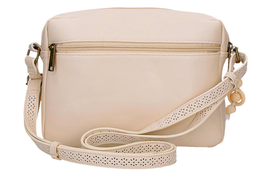 CLARA kolekcija prepoznatljiva je po spoju tekstura i pažljivo osmišljenim dekorativnim elementima. Pleteni prednji panel donosi toplinu i vizuelnu mekoću, dok privezak sa resama daje pokret i nenametljivu boho notu. Poseban detalj ovog modela je podesivi kaiš sa perforiranim floralnim motivima, koji dodatno ističe ženstven i razigran karakter torbe.