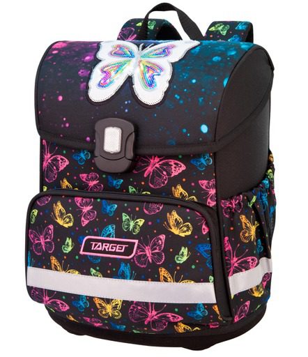 Ranac Target sa dva lica; jednostavnom zamenom prednje strane dobijate novi izgled ranca; ranac đački; anatomski; super lagan; dimenzija: 32x43x18 cm; ergonomski oblikovan leđni deo omogućava protok vazduha; anatomski oblikovane naramenice; kaiševi za podešavanje; dodatno podešavanje naramenica koje prati rast deteta; snažno reflektujući, sigurnosni delovi; materijal odbija vodu, štiti od vlage, tri pregrade sa zipom, džepovi sa bočnih strana, lagano višeslojno čvrsto dno.